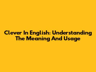 Clever In English: Understanding The Meaning And Usage