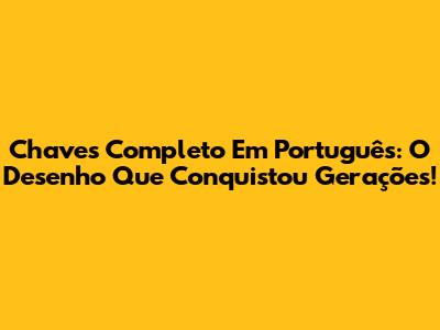 Chaves Completo Em Português: O Desenho Que Conquistou Gerações!
