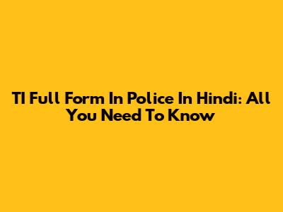 TI Full Form In Police In Hindi: All You Need To Know