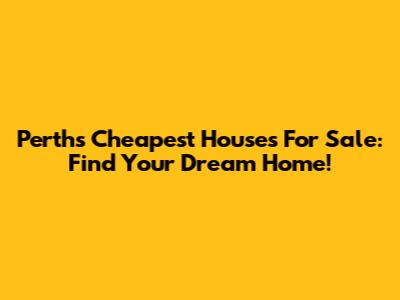 Perth's Cheapest Houses For Sale: Find Your Dream Home!