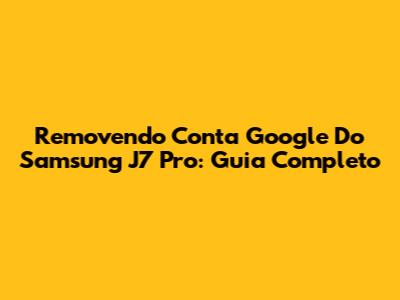 Removendo Conta Google Do Samsung J7 Pro: Guia Completo