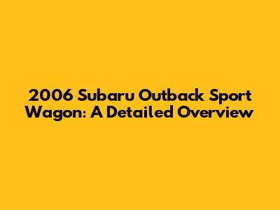 2006 Subaru Outback Sport Wagon: A Detailed Overview