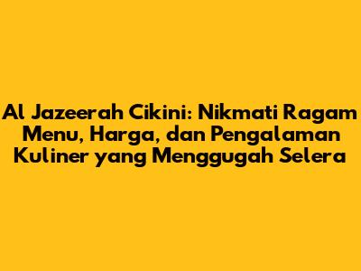 Al Jazeerah Cikini, sebuah restoran yang telah lama menjadi favorit di kalangan pecinta kuliner Jakarta, menawarkan pengalaman makan yang tak terlupakan. Terletak strategis di kawasan Cikini yang ramai, restoran ini terkenal dengan hidangan khas Timur Tengah yang autentik dan suasana yang nyaman. Dalam panduan lengkap ini, kita akan menjelajahi menu Al Jazeerah Cikini, harga yang ditawarkan, dan berbagai aspek lain yang membuat restoran ini begitu istimewa. Mari kita selami lebih dalam, guys!