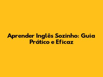 Aprender Inglês Sozinho: Guia Prático E Eficaz
