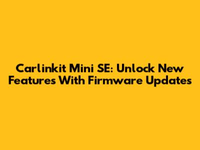Carlinkit Mini SE: Unlock New Features With Firmware Updates