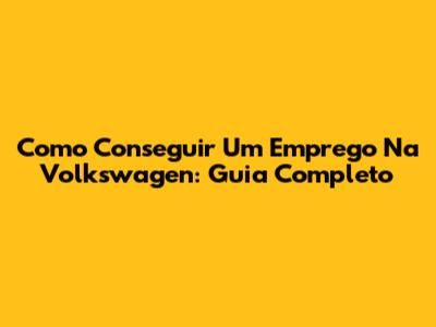 Como Conseguir Um Emprego Na Volkswagen: Guia Completo
