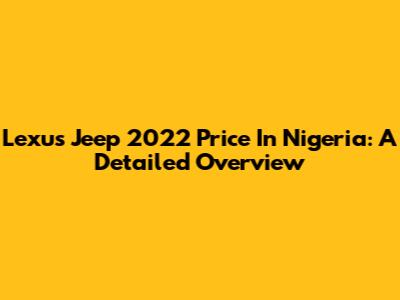 Lexus Jeep 2022 Price In Nigeria: A Detailed Overview