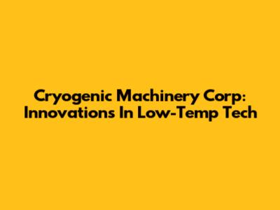 Cryogenic Machinery Corp: Innovations In Low-Temp Tech