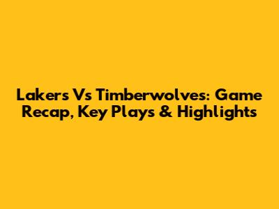 Lakers Vs Timberwolves: Game Recap, Key Plays & Highlights