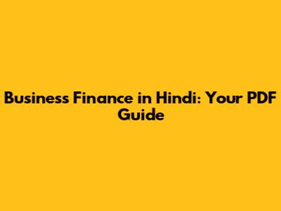Business Finance In Hindi: Your PDF Guide