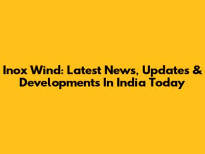 Inox Wind: Latest News, Updates & Developments In India Today