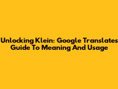 Unlocking 'Klein': Google Translate's Guide To Meaning And Usage
