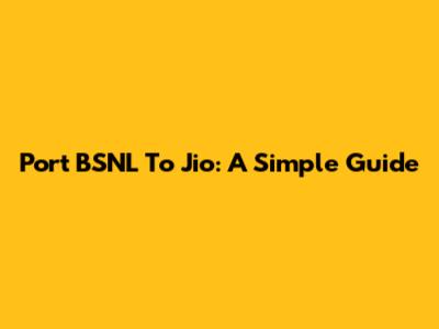 Port BSNL To Jio: A Simple Guide