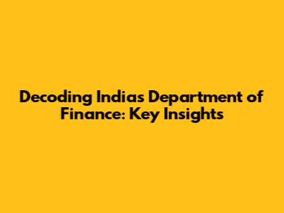 Decoding India's Department Of Finance: Key Insights