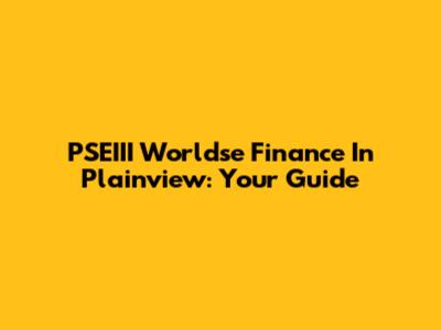 PSEIII Worldse Finance In Plainview: Your Guide