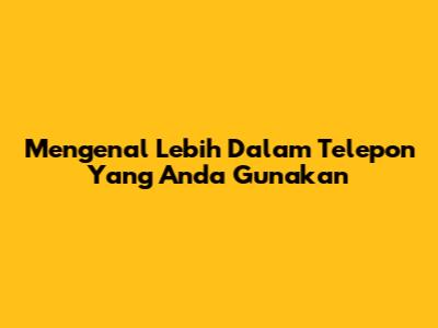 Mengenal Lebih Dalam Telepon Yang Anda Gunakan