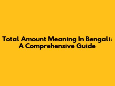 Total Amount Meaning In Bengali: A Comprehensive Guide