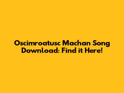 Where to Legally Download Oscimroatusc Machan