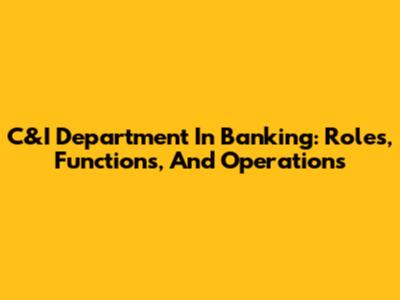 C&I Department In Banking: Roles, Functions, And Operations