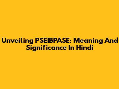 Unveiling PSEIBPASE: Meaning And Significance In Hindi