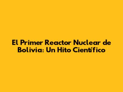 El Primer Reactor Nuclear De Bolivia: Un Hito Científico
