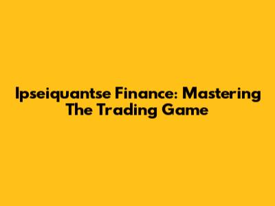 Ipseiquantse Finance: Mastering The Trading Game
