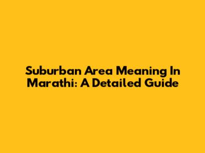 Suburban Area Meaning In Marathi: A Detailed Guide