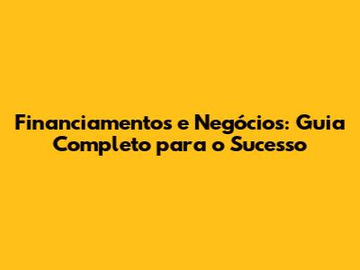 Financiamentos E Negócios: Guia Completo Para O Sucesso