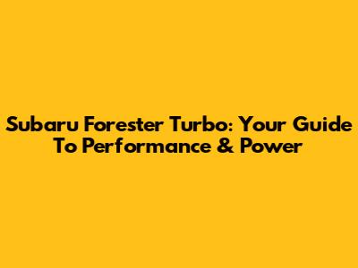 Subaru Forester Turbo: Your Guide To Performance & Power