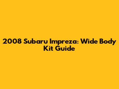 2008 Subaru Impreza: Wide Body Kit Guide
