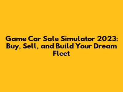 Game Car Sale Simulator 2023: Tips and Tricks for Success