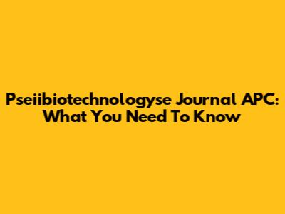 Pseiibiotechnologyse Journal APC: What You Need To Know