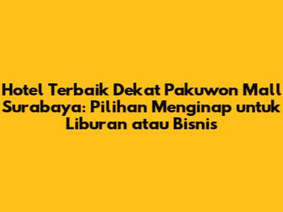Kesimpulannya, memilih hotel dekat Pakuwon Mall Surabaya adalah pilihan yang sangat tepat untuk berbagai keperluan perjalanan Anda. Dengan mempertimbangkan berbagai faktor seperti lokasi, fasilitas, anggaran, dan ulasan tamu, Anda dapat menemukan hotel yang sesuai dengan kebutuhan dan preferensi Anda. Jangan ragu untuk menjelajahi berbagai pilihan yang tersedia dan manfaatkan tips yang telah kami berikan untuk mendapatkan pengalaman menginap yang tak terlupakan. Selamat menikmati liburan atau perjalanan bisnis Anda di Surabaya!