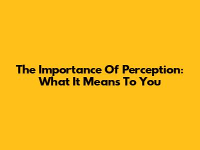 The Importance Of Perception: What It Means To You