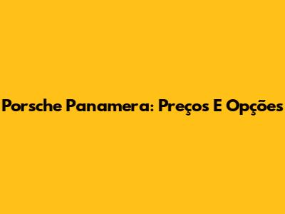 Porsche Panamera: Preços E Opções
