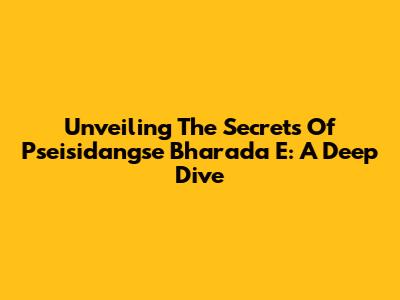 Unveiling The Secrets Of 'Pseisidangse Bharada E': A Deep Dive