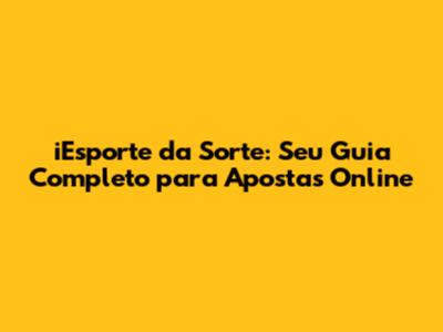IEsporte Da Sorte: Apostas Online E Tudo Que Você Precisa Saber