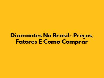 Diamantes No Brasil: Preços, Fatores E Como Comprar