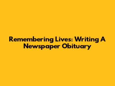 Remembering Lives: Writing A Newspaper Obituary