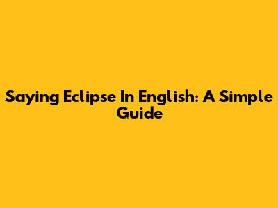 Saying "Eclipse" In English: A Simple Guide