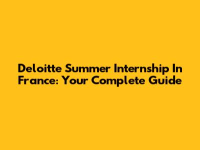 Deloitte Summer Internship In France: Your Complete Guide