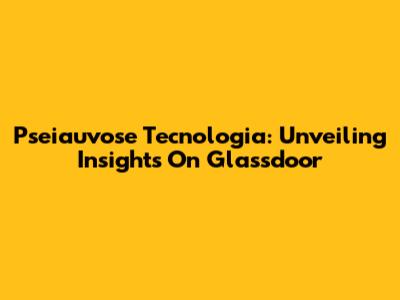 Pseiauvose Tecnologia: Unveiling Insights On Glassdoor
