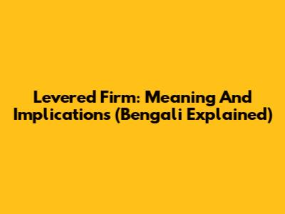 Levered Firm: Meaning And Implications (Bengali Explained)