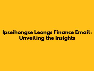 Ipseihongse Leong's Finance Email: A Deep Dive