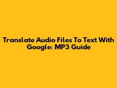 Translate Audio Files To Text With Google: MP3 Guide