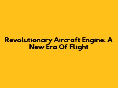 Revolutionary Aircraft Engine: A New Era Of Flight