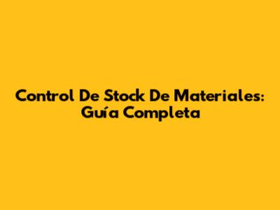 Control De Stock De Materiales: Guía Completa