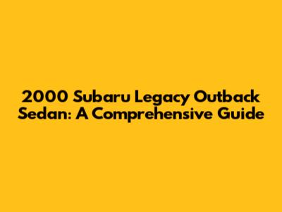 2000 Subaru Legacy Outback Sedan: A Comprehensive Guide