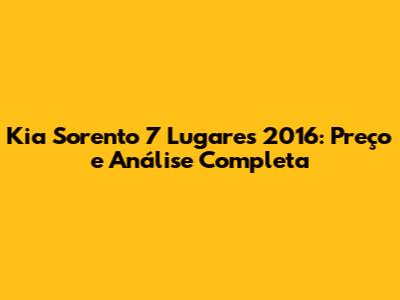 Hey pessoal! Se você está procurando um SUV espaçoso e confortável para a família, o Kia Sorento 7 Lugares 2016 pode ser uma excelente opção. Neste artigo, vamos detalhar tudo o que você precisa saber sobre este modelo, desde o preço até os principais aspectos que o tornam uma escolha interessante no mercado de usados. Vamos lá!