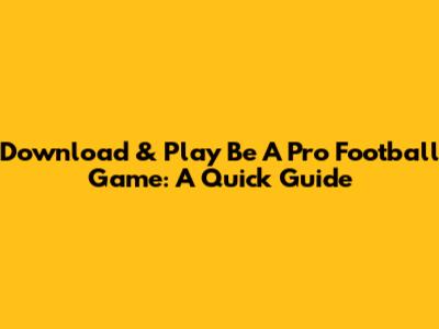 Download & Play Be A Pro Football Game: A Quick Guide